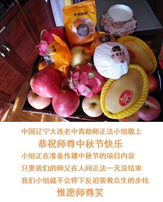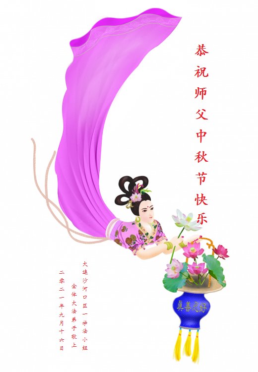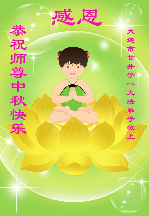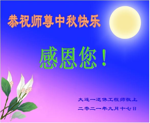 感谢师尊没有放弃我这个不争气的弟子,弟子只有精進做好三件事,报答师恩! 辽宁省大连市甘井子一学法组大法弟子恭祝师尊中秋节快乐!