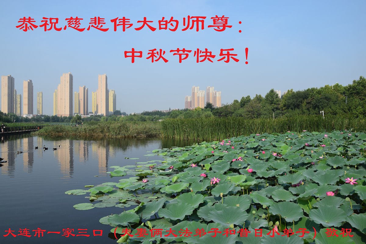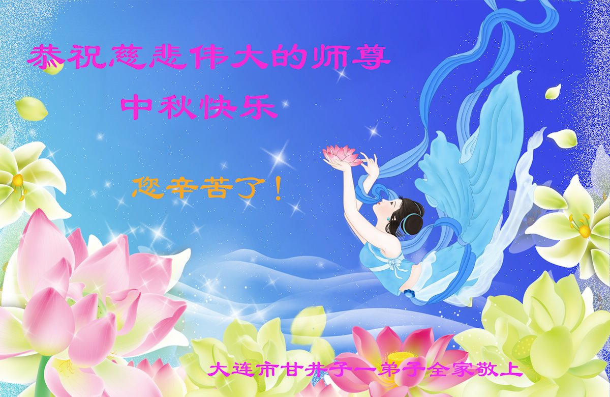 谢谢师父慈悲苦度!师父您辛苦了! 辽宁省大连市甘井子一大法弟子全家恭祝师尊中秋节快乐!