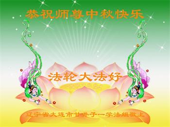 辽宁省大连沙河口区一学法小组全体大法弟子恭祝师父中秋节快乐!
