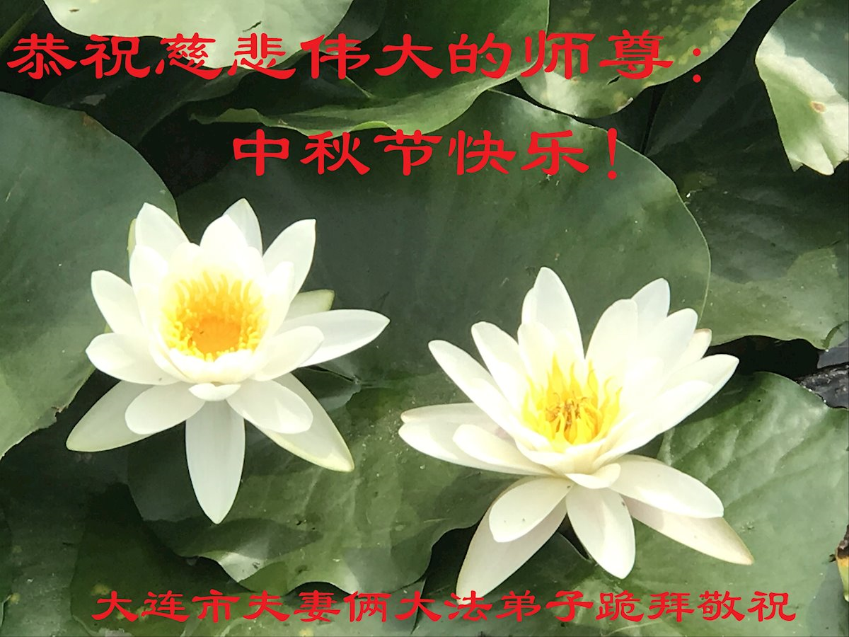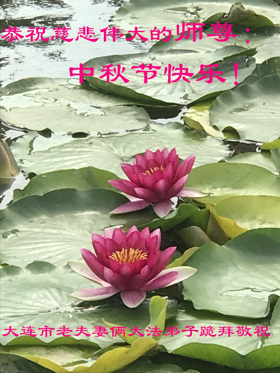 辽宁省大连市夫妻俩大法弟子恭祝慈悲伟大的师尊中秋节快乐!