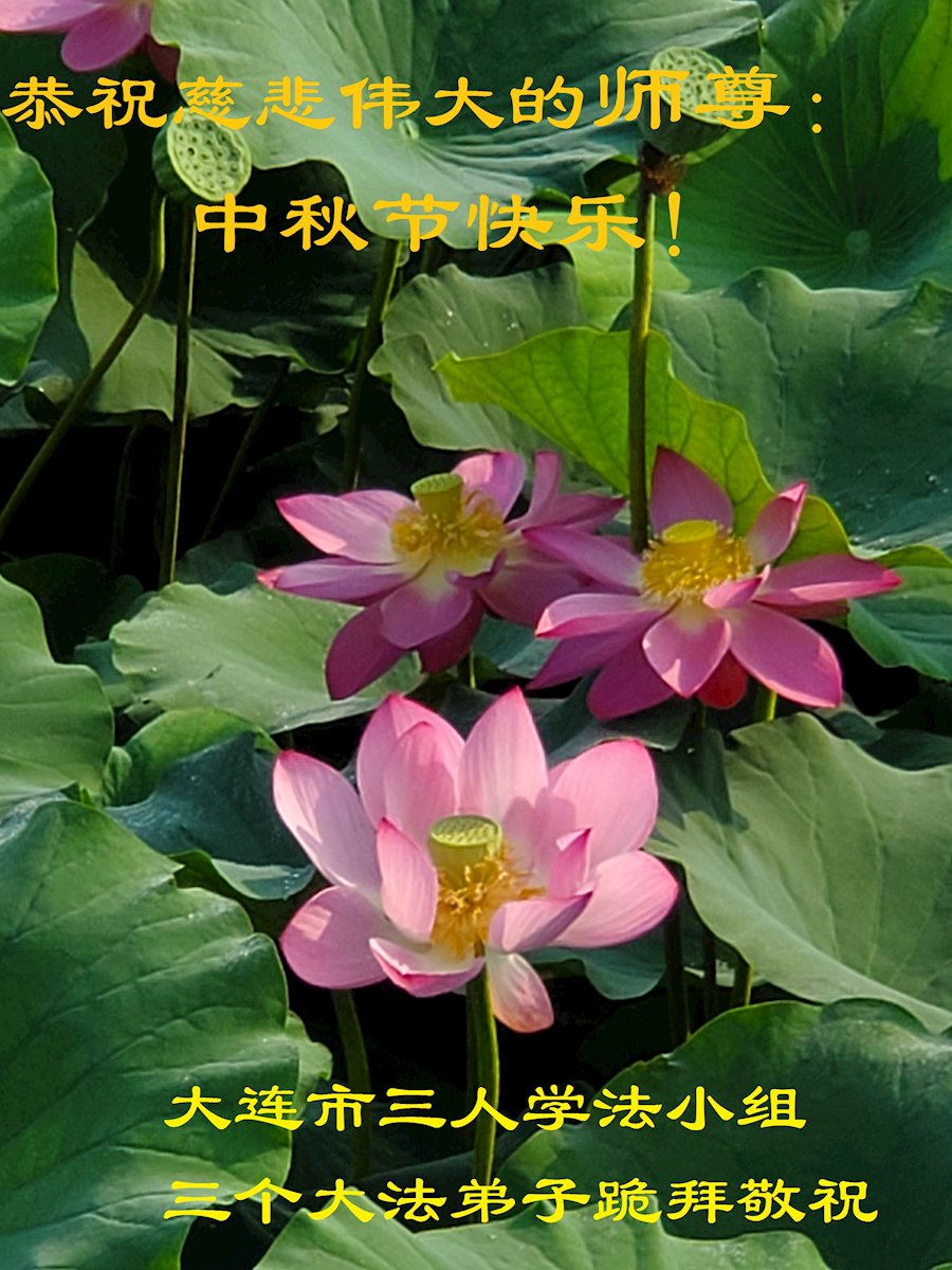 辽宁省大连市三人学法小组三位大法弟子恭祝慈悲伟大的师尊中秋节快乐!