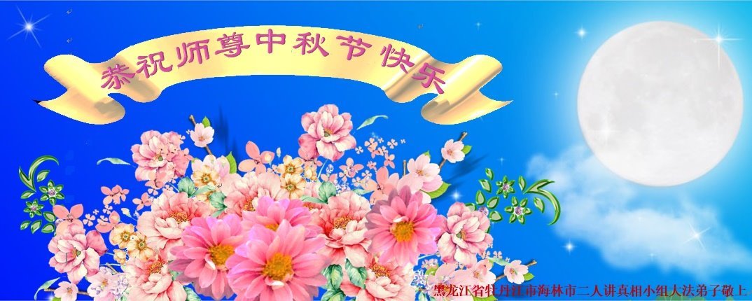 我们学法小组五人感激师尊救命之恩,我们会互相提醒做好三件事,跟师父回家! 黑龙江省牡丹江市海林市二人讲真相小组大法弟子恭祝师尊中秋节快乐!