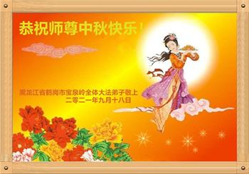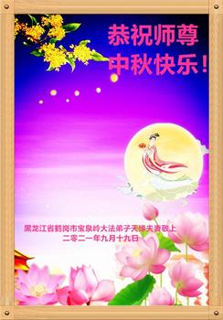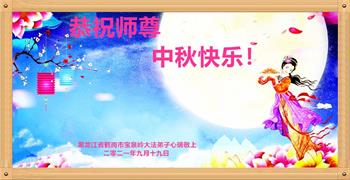 【明慧网二零二一年九月二十一日】 黑龙江省七台河市勃利县大法弟子一学法小组祝师父中秋节快乐!