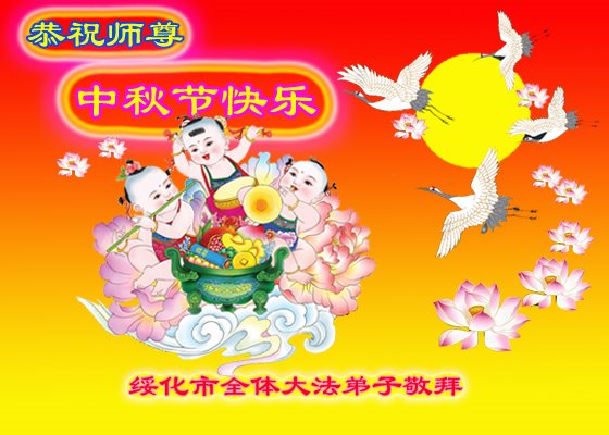 师尊把无比珍贵的宇宙大法传给末劫中的众生,挽救苍宇大穹,挽救世人,师尊的无量智慧与慈悲包容天地万物!感动亿万修炼者与家人!可是在中共几十年的无神洗脑下,很多人在远离了神对人的规范,五千年的神传文化被迫中断。尽管大法洪传二十多年,很多人还未苏醒,使很多原本善良的人仍处于危险之中。我们身负救人使命的大法弟子,为了这一方更多的世人能得救,要听师尊的话,学好法,修炼好自己,互相配合好,共同兑现自己神圣的使命!盼师尊早日重返东土。 二零一二年九月 黑龙江省绥化市全体大法弟子恭祝师尊中秋快乐!