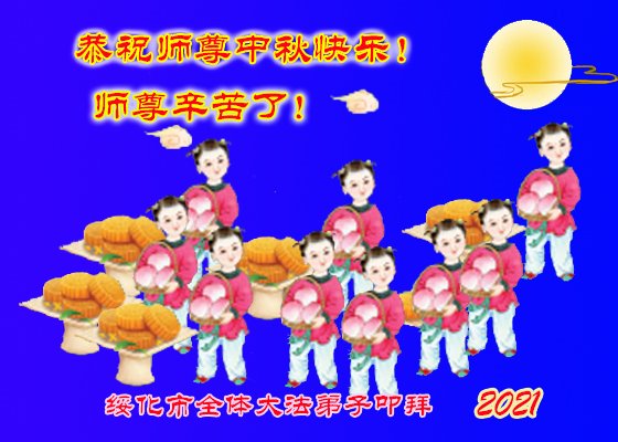 日月如梭,又到了中秋节,弟子想念师尊,代表全家恭祝师尊中秋快乐!弟子在师尊的慈悲保护下修炼二十多年了,每一步的提高都离不开师尊的保护,弟子在今后的修炼中,要修炼好自己,完成师尊交给的三件事,让师尊多一些安慰,少一些操劳,不辜负师尊的慈悲苦度! 祝师尊中秋节快乐! 二零二一年九月十八日 黑龙江省绥化市北林区大法弟子代表全家恭祝师尊中秋快乐!