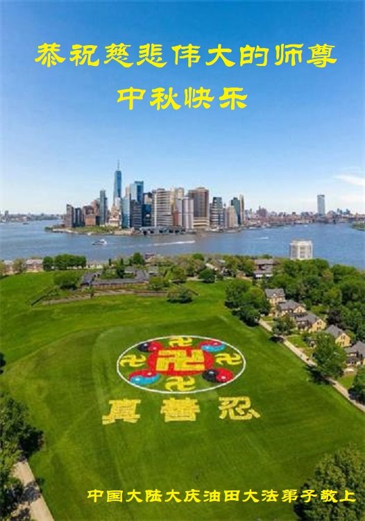 一年的时光过的飞快,转眼又到了金色中秋。我们学法小组大法弟子走在师父安排的路上,心中充满光明与希望。 我们恭祝慈悲伟大的师尊中秋快乐! 胜利油田一大法弟子全家恭祝师尊中秋快乐!