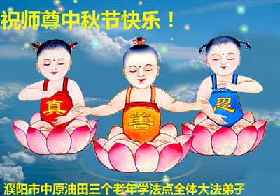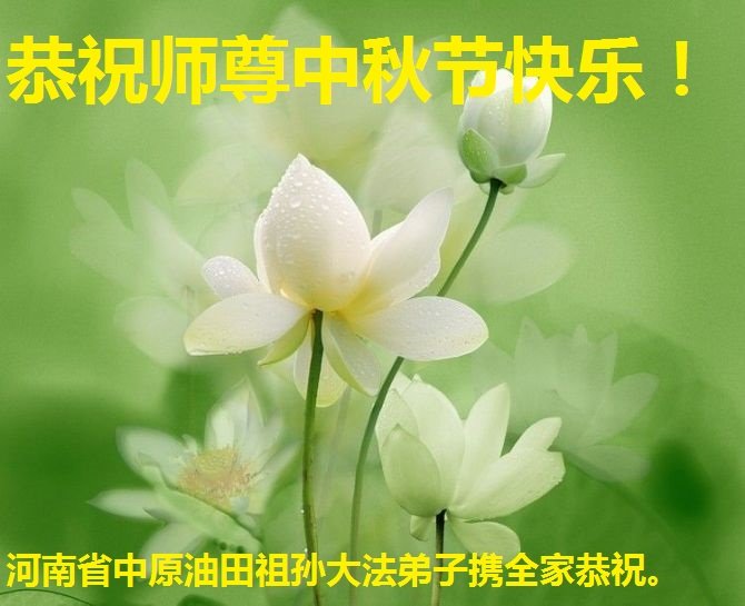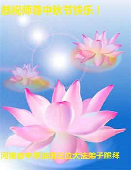 我们会用心学法,修好自己,做好三件事,救度更多的众生。让师尊多一点温馨,少一点操劳。 河南省中原油田三位大法弟子恭祝师尊中秋节快乐!