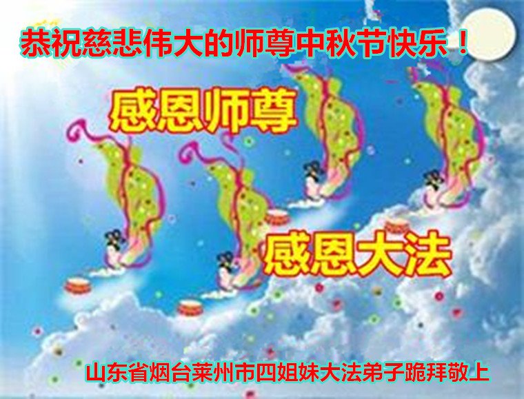 山东省烟台市龙口市大法弟子全家恭祝师尊中秋节快乐!感谢师尊的慈悲保护! 龙口市大法弟子全家叩谢 山东威海一大法弟子恭祝慈悲伟大的师尊中秋节快乐!