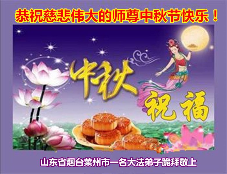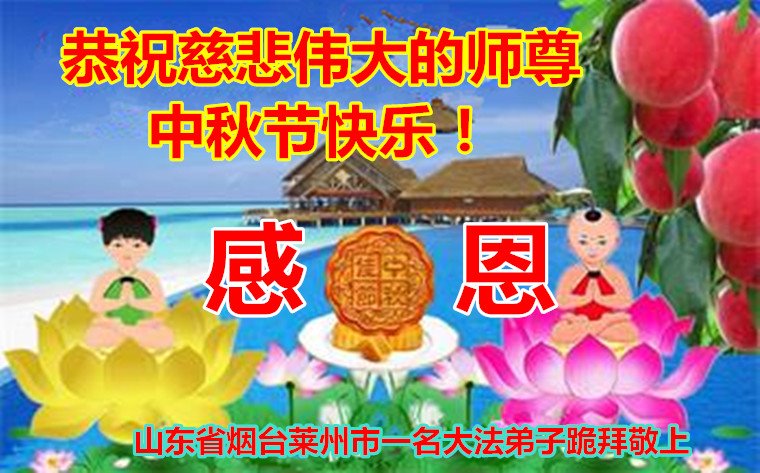 山东省烟台莱州市一名大法弟子恭祝慈悲伟大的师尊中秋节快乐!