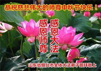 山东省烟台市全体大法弟子恭祝慈悲伟大的师尊中秋节快乐!