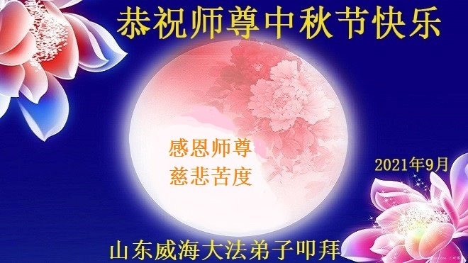 慈悲伟大的师父好: 弟子衷心敬祝师父中秋快乐!叩拜师父。 山东烟台市招远市大法弟子敬上 二零二一年九月六日 山东烟台市招远市大法弟子恭祝师父中秋快乐!