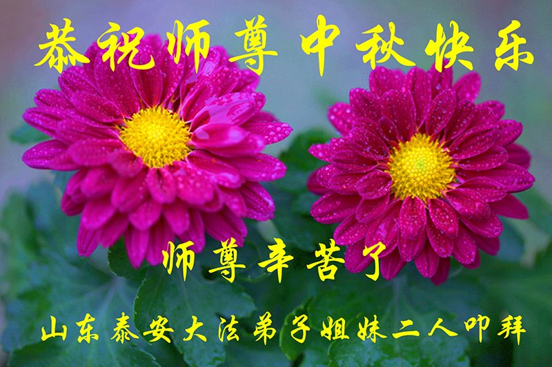 山东泰安大法弟子姐妹二人恭祝师尊中秋快乐!