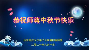 恭祝师尊中秋节快乐! 弟子期待早日与师尊团圆。 山东省滨州市全体大法弟子敬上 2021年8月29日 山东威海一学法小组大法弟子恭祝师尊中秋节快乐!
