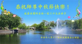 旅居美国旧金山湾区的吉林一家三口大法弟子恭祝师尊中秋节快乐!