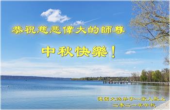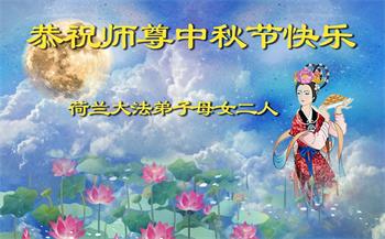 英国大法弟子及家人恭祝慈悲伟大的师尊中秋节快乐!谢谢师尊的慈悲救度!万语千言无法表达对师尊的救度之恩,唯有精進报师恩。师尊辛苦了!英国大法弟子及家人敬上 荷兰大法弟子母女二人恭祝师尊中秋节快乐!