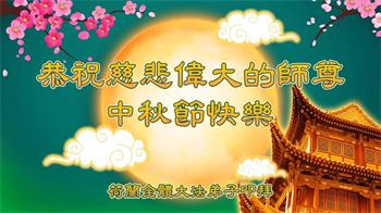 弟子叩谢师父慈悲救度!弟子唯有精進,多救人,报师恩!德国杜伊斯堡大法弟子敬上。合十 法国一华人大法弟子恭祝慈悲伟大的师尊中秋节快乐!弟子无限感恩师尊慈悲救度。叩拜师尊!