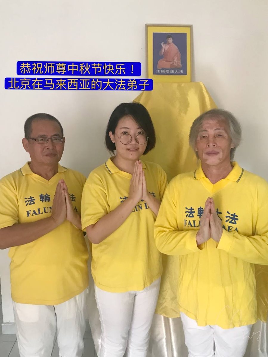 在马来西亚的三名大陆大法弟子恭祝师尊中秋节快乐!
