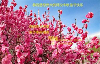感恩师尊把弟子从地狱捞起。感恩师尊慈悲苦度。感恩师尊加持弟子正念正行。中秋佳节之际,弟子叩拜师恩。弟子会谨记师尊教诲,做好三件事,惟愿师尊笑! 黑龙江大庆一姐俩大法弟子恭祝师尊中秋节快乐!