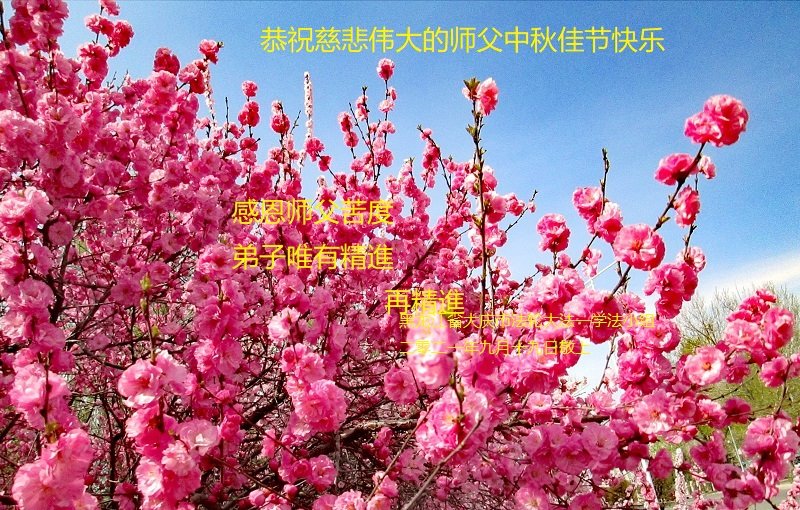 感谢师父对弟子的教诲与不离不弃,弟子要努力修好自己,修去为私为我、从大法中索取好处的心,多救众生,助师正法,做一个真正的正法时期的大法弟子! 黑龙江大庆市龙岗大法弟子恭祝慈悲伟大的师尊中秋节快乐!
