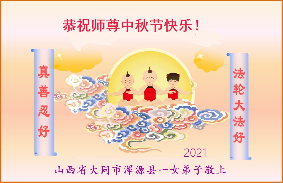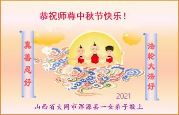 【明慧网二零二一年九月二十一日】 山西大同阳高县一大法弟子恭祝慈悲伟大的师尊中秋节快乐!