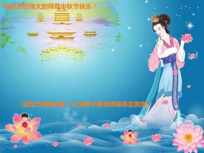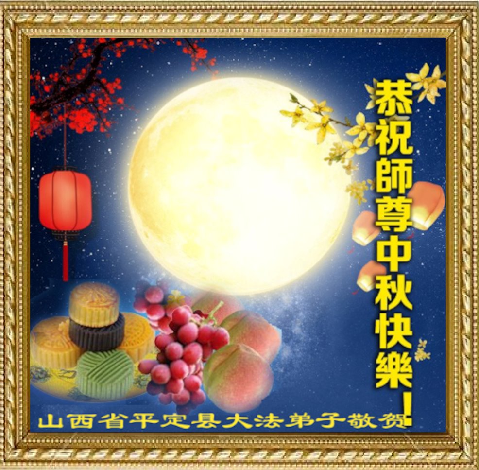 恭祝慈悲伟大的师尊中秋节快乐! 感恩师父救度洪恩! 弟子跪谢叩拜 山西省阳泉市平定县大法弟子敬上 山西省阳泉市一大法弟子恭祝慈悲伟大的师尊中秋快乐!