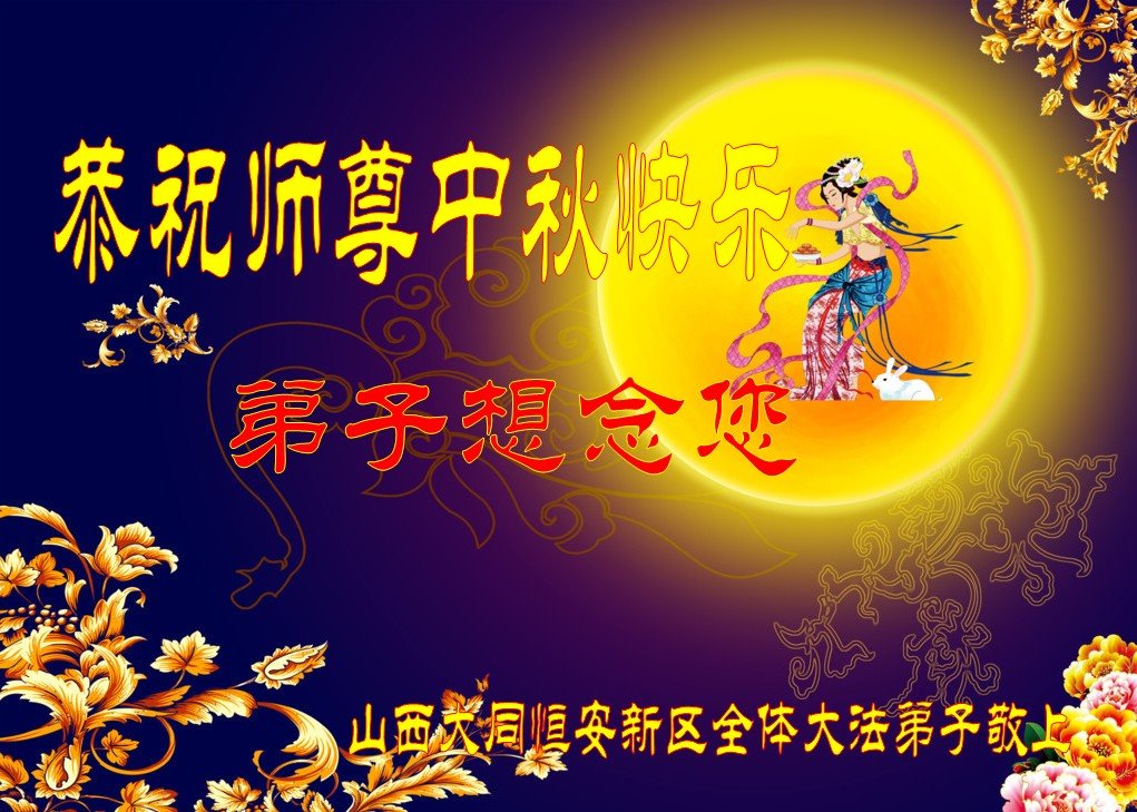 恭祝师尊中秋节快乐! 山西大同恒安新区全体大法弟子敬上 山西省一学法小组大法弟子恭祝慈悲伟大的师尊中秋好!