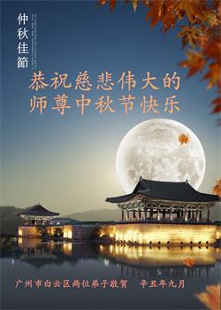 弟子万分感恩师父的慈悲苦度。 广东省广州市白云区两位大法弟子敬贺师尊中秋节快乐!