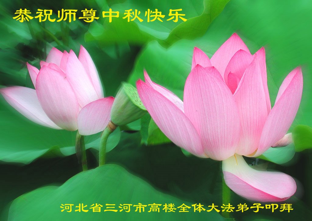 弟子感恩师尊救度,弟子想念师尊,弟子盼望师尊回国,弟子惟愿师尊微笑。 河北省廊坊市三河市高楼镇全体大法弟子恭祝慈悲伟大的师尊中秋快乐!