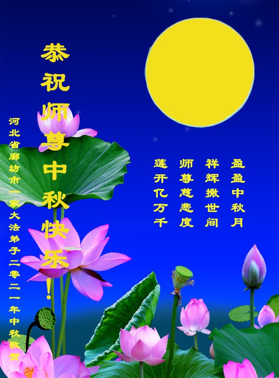 【明慧网二零二一年九月二十一日】 河北省廊坊一学法小组大法弟子恭祝师尊中秋快乐!