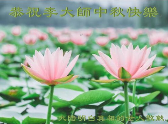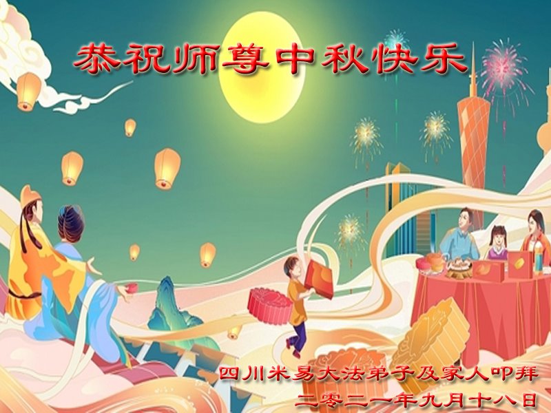 师尊您辛苦了!我们要认真学法、精進实修、抓紧时间救度世人,不负师尊的慈悲救度。 山东省烟台市龙口市大法弟子家明真相的有福人衷心祝愿大法师父中秋节快乐!