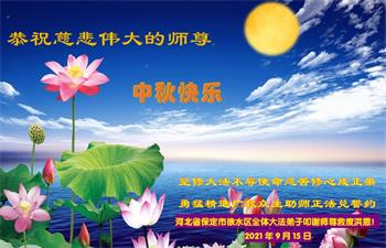 河南许昌大法弟子家人继续支持大法,支持家人修炼,支持多救度众生,并一如既往紧跟大法师父的進程,请大法师父放心。并祝大法师尊中秋快乐! 河北省保定市徐水区全体大法弟子恭祝慈悲伟大的师尊中秋快乐!