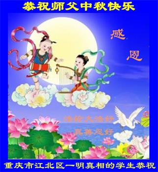 叩拜! 重庆市江北区一明真相的学生恭祝师父中秋节快乐!