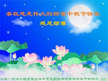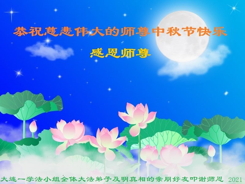 我是大陆明真相的人,通过接触大陆大法弟子,我不但了解了法轮功真相,也了解到他们都是一群善良的好人。他们不占别人便宜、不欺负人、不起骗人、不骂人、不打人,处处为别人着想,是当今大陆仅有的好人,和那些贪官简直无法比。在此,强烈呼吁停止对法轮功及法轮功修炼者的迫害,如果继续迫害下去,中国将灭亡,因为法轮功是“真、善、忍”这些年对法轮功的非法镇压已经使中国失去道德、失去法律,贪官遍地、违法、违纪遍地。每抓捕一个大法弟子就会使一个地区的人不敢做好人,因为修炼法轮功的人不管年龄、职位都是好人,已经是在大陆公开的秘密,也是人人皆知的事。每抓一个大法弟子,就把中共推向灭亡更加快了一步,再不停止中国恐怕也将灭亡。 借中秋节向李老师问好!希望李老师早日回国。 大陆明真相的人口述,大法弟子整理。 2021年9月19日 辽宁省大连一学法小组全体大法弟子及明真相的亲朋好友恭祝慈悲伟大的师尊中秋节快乐!