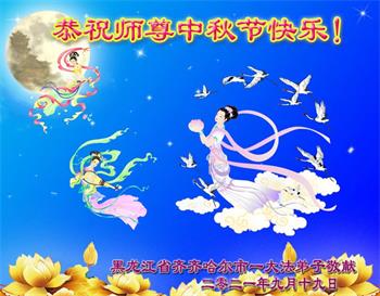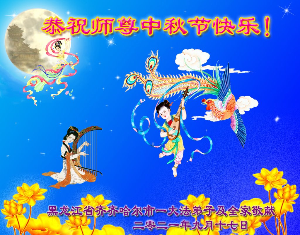【明慧网二零二一年九月二十一日】 黑龙江省齐齐哈尔市一大法弟子及全家恭祝师尊中秋节快乐!