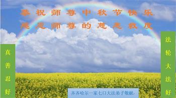 齐齐哈尔市一大法弟子及全家敬献 黑龙江省齐齐哈尔市一家七口大法弟子恭祝师父中秋快乐!