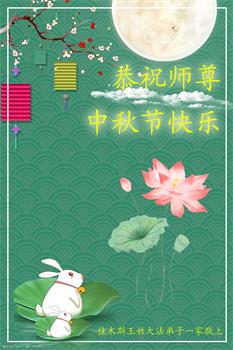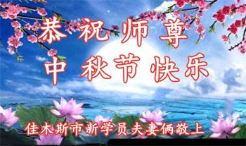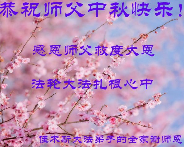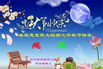 我们全家在大法中受益无穷,我们感恩师父救度大恩!我们永远记住:法轮大法好,真善忍好!大法永远扎根于心中!弟子的家人谢师恩! 黑龙江省佳木斯一法徒恭祝师父中秋快乐!