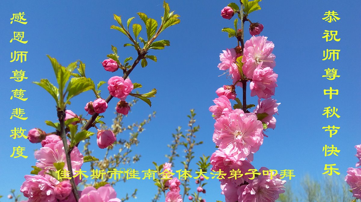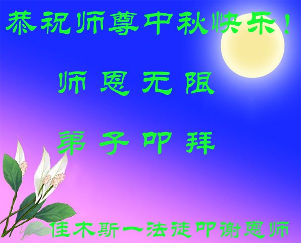 恭祝师尊中秋节快乐!感恩师尊慈悲救度! 佳木斯市佳南全体大法弟子叩拜 黑龙江省佳木斯市佳南大法弟子恭祝师尊中秋节快乐!