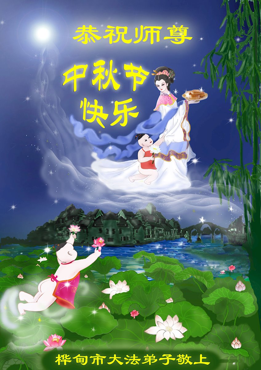 吉林省吉林市桦甸市一家大法弟子恭祝慈悲伟大的师尊中秋节快乐! 吉林省吉林市桦甸市一大法弟子谨代表桦甸市全体大法弟子敬祝师父中秋节快乐!