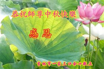 吉林省吉林市一大法弟子及家人恭祝慈悲伟大的师尊中秋节快乐!