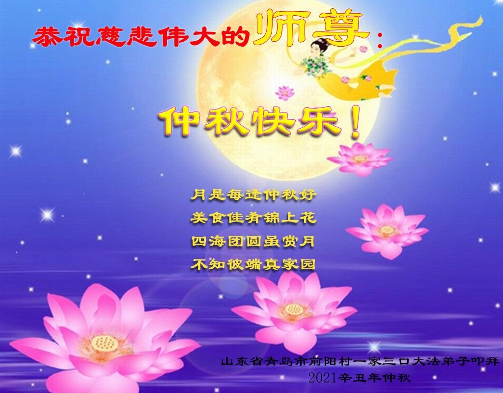【明慧网二零二一年九月二十一日】 山东省青岛大法弟子全家感恩师尊救度!遥祝师尊中秋快乐!