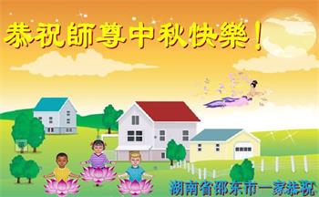 湖南省衡阳市石鼓区一大法弟子全家三口恭祝师尊中秋好!