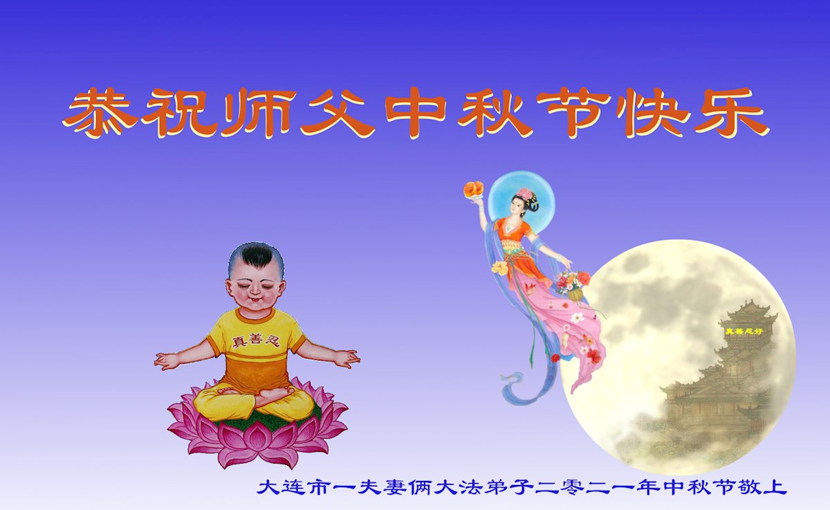 辽宁省大连一夫妻俩大法弟子恭祝师父中秋节快乐!