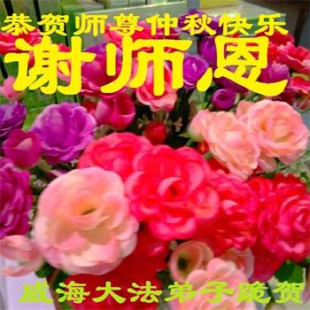 师尊好!师尊辛苦了!千言万语也无法表达对师尊的感恩之情。弟子唯有修好自己,做好三件事,报答师恩。惟愿师尊笑。 山东省威海市荣成市一大法弟子恭祝师尊中秋快乐!