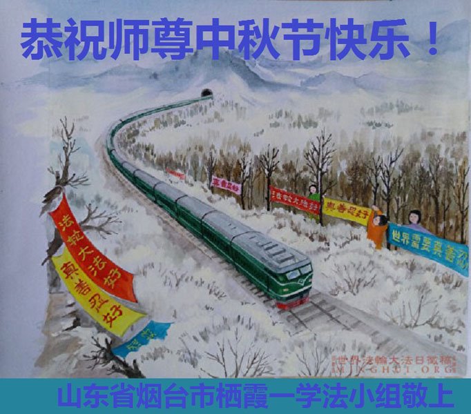 感恩师尊慈悲救度!我们一定多去人心,用正念清除邪恶,救度众生,完成自己的史前大愿。 山东省烟台市栖霞全体大法弟子恭祝慈悲伟大的师尊中秋快乐!