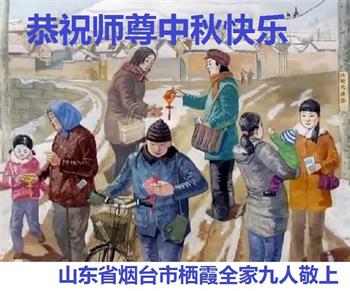 恭祝师尊中秋节快乐! 山东省威海市大法弟子祖孙三代敬上 山东省烟台市莱州市大法弟子恭祝师尊中秋快乐!