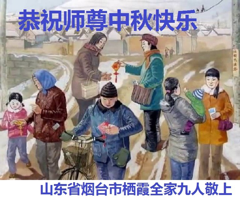 我们一定听师父的话,做好三件事,不惧严寒酷暑多救人。让师父多一份欣慰,少一份操劳。 山东省烟台市栖霞一学法小组大法弟子恭祝慈悲伟大的师尊中秋节快乐!