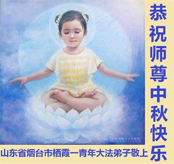 山东省烟台市栖霞一青年大法弟子恭祝慈悲伟大的师尊中秋快乐!