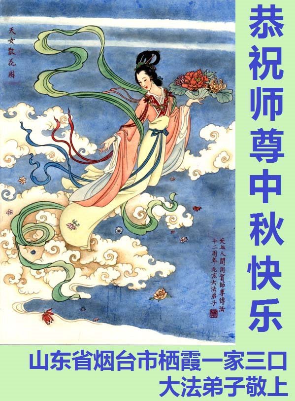 师父辛苦了,弟子感恩师父慈悲救度。今后按照师父要求的多学法、做好三件事,精進实修跟师父回家。 叩谢师恩!祝愿师父中秋节快乐! 山东烟台招远两名大法弟子敬上 山东省烟台市栖霞市大法弟子恭祝慈悲伟大的师尊中秋节快乐!