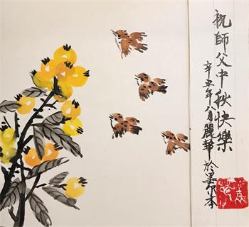 层层天宇众生翘首企盼,芸芸凡间生命临危志坚, 亿万法徒救人无畏艰险,伟大师尊辛苦承载巨难。 弟子心明牢记尊师教导,实践兑现曾经许诺誓言。 您的慈悲滋润穹宇人间,您的智慧散射无限光环, 生命梦想在末劫得救度,法徒企盼助师力挽狂澜。 是您给弟子勇气和肝胆,让生命的梦想得以兑现, 您携弟子下走层层穹苍,结缘众生为成宇宙浩瀚。 梦想的成就要展现眼前,沁透您播撒的恩典露甘, 借此中秋月圆美好景观,衷表弟子感恩尽在无言。 谨以本诗《我们的梦想》和《梦想》这首乐曲 献给慈悲伟大的师尊,弟子敬祝师尊辛丑年中秋快乐! 澳大利亚墨尔本一老年女大法弟子献上两幅画作恭祝师尊中秋快乐!