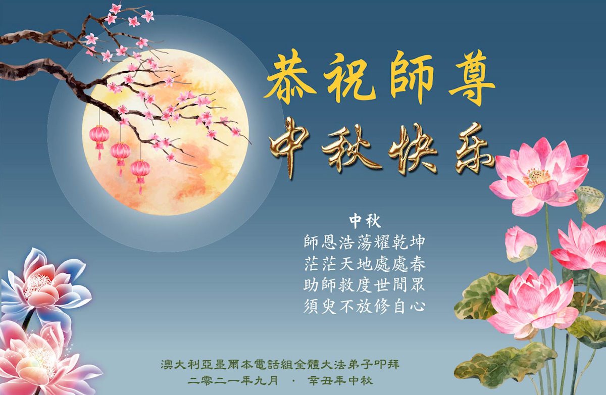 【明慧网二零二一年九月二十一日】 澳大利亚墨尔本一学法小组大法弟子恭祝师尊中秋快乐!